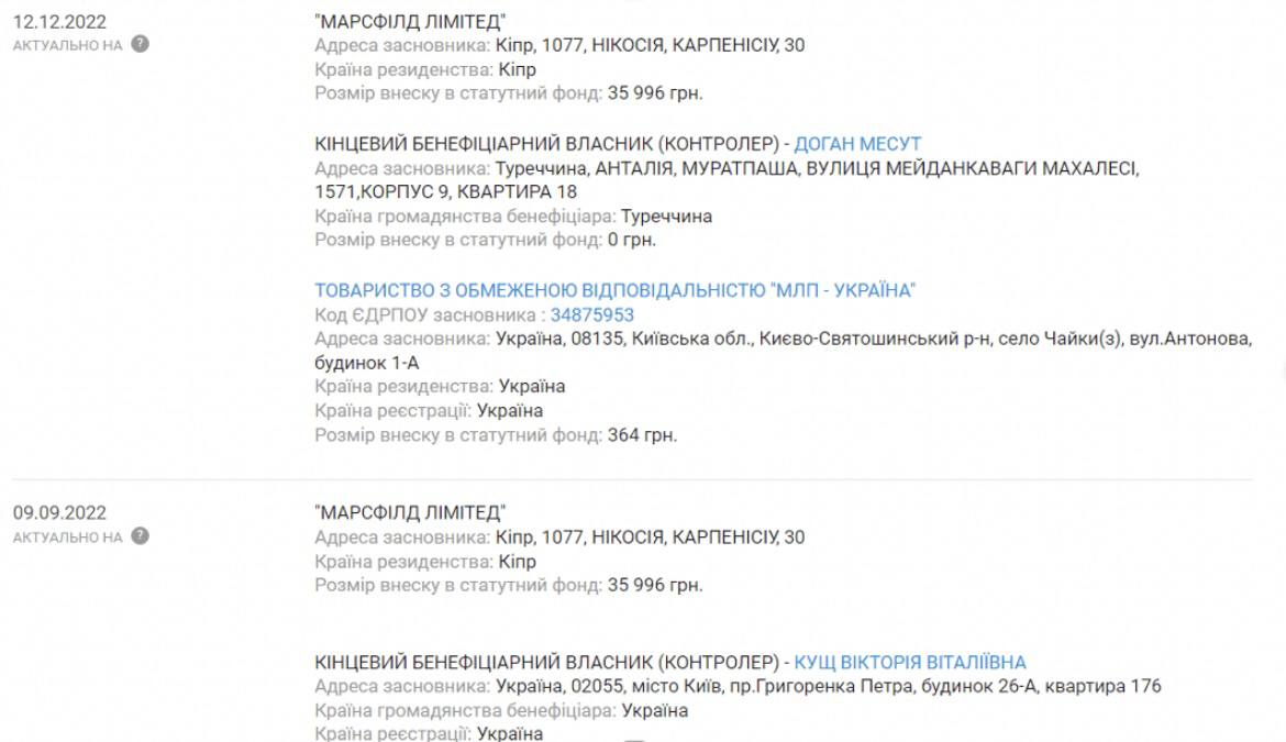 Після виходу розслідування в реєстрі юридичних осіб з’явились зміни. Тепер бенефіціаром компанії зазначений громадянин Туреччини Доган Месут.