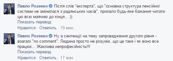 В той же час, ЕП повідомляє, що коментуючи публікацію в Facebook, Павло Розенко піддав сумніву професійні якості ван Родена, вказавши, що той не розуміє, як працює пенсійна система України.