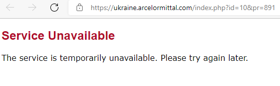 Сайт одного з найбільших виробників сталевого прокату в Україні - компанії "АрселорМіттал Кривий Ріг", "упав" після повідомлення підприємства про те, що кошти на рахунках заблокували Офіс генерального прокурора спільно із Шевченківським судом міста Київ. При заході на сайт, висвічується повідомлення, що сайт недоступний.