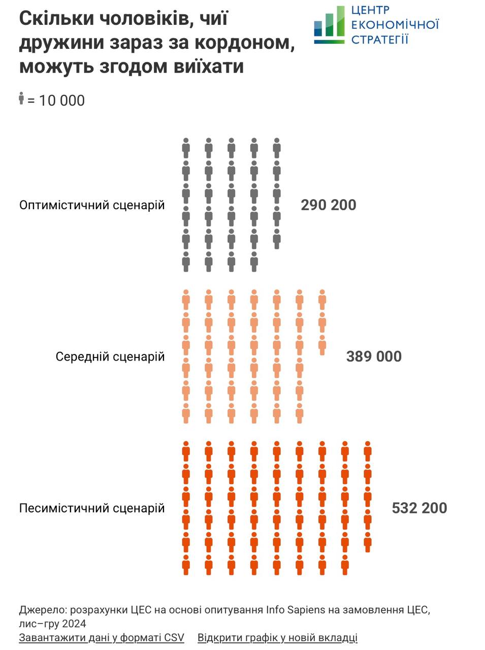 Крім того, відповідно до дослідженні, за кордон додатково можуть виїхати 290 тис. українських чоловіків за оптимістичного сценарію, 389 тис. — за середнього та 532 тис. — за песимістичного.