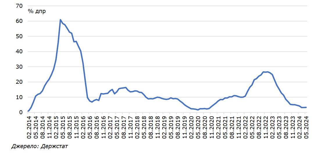 “Помірні інфляційні очікування та порівняно обмежений попит надалі стримуватимуть зростання цін, тому різкого підвищення цін на більшість товарів не очікується. Винятком став тариф на електроенергію, який уряд у червні підняв на 62% (з 2,2 до 3,6 грн за кВт-год без ПДВ): це підвищення збільшить індекс споживчих цін більш як на 1%. Місячна інфляція у травні прискорилася до 0,6% дпм через подорожчання фруктів на понад 10% дпм. Водночас далі обвалювались ціни на яйця: вони подешевшали на 14% дпм та майже удвічі порівняно з груднем. Ціни на інші товари зростали в середньому на 0,3% дпм”, – зазначається у моніторингу.