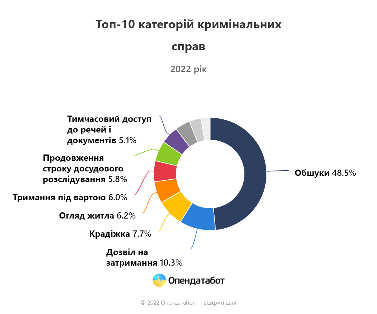 У топі кримінальних справ єдиною категорією, яка стосується саме злочинів, є справи щодо крадіжки майна.