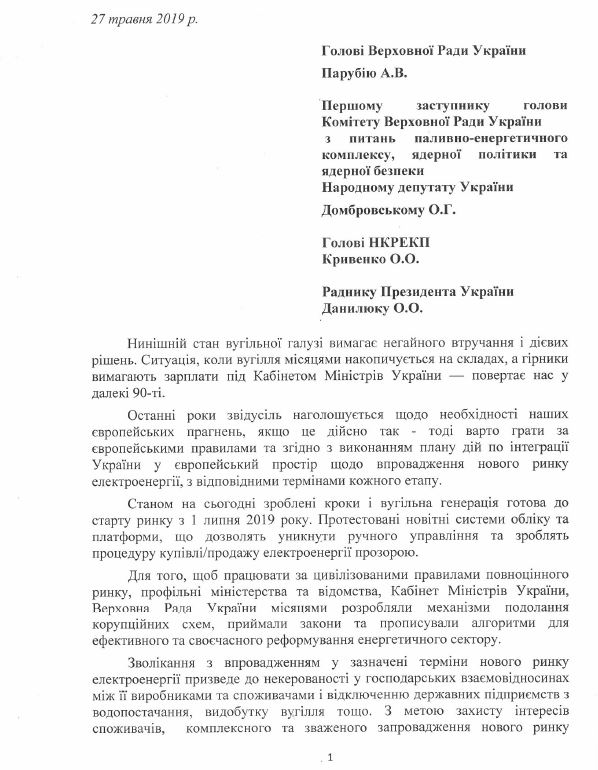 Автори звернення наголошують на готовності вугільної генерації до роботи за новими правилами. "Станом на сьогодні вугільна генерація готова до старту ринку з 1 липня 2019 року. Протестовані новітні системи обліку та платформи, що дозволять уникнути ручного управління та зроблять процедуру купівлі/продажу електроенергії прозорою", - зазначають лідери профспілки.