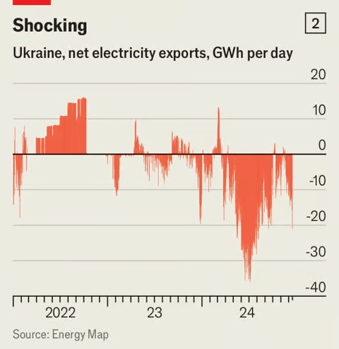 Позитивним моментом є те, що країна стала краще підготовленою до поглинання таких потрясінь. У грудні Україна збільшила свої потужності з імпорту електроенергії з ЄС майже на чверть, до 2,1 ГВт. Багато виробників харчових продуктів ферментують відходи своїх виробництв у біогаз, який вони використовують на місці. Багато фермерів також мають дизельні генератори. Середні фірми часто мають установки, що працюють на природному газі, які вони іноді поєднують з вітровою та сонячною енергією. Промислові компанії використовують все це разом з імпортом, щоб уникнути катастрофічних відключень.