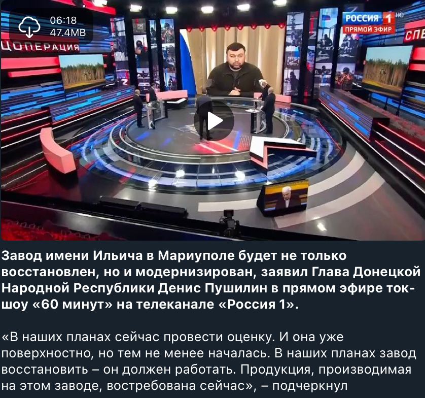 Нагадаємо, радник міського голови Маріуполя Петро Андрющенко на своєму телеграм-каналі написав, що орки в тимчасово окупованому Маріуполі хочуть відновити роботу зруйнованого ними металургійного комбінату "ММК ім. Ілліча".