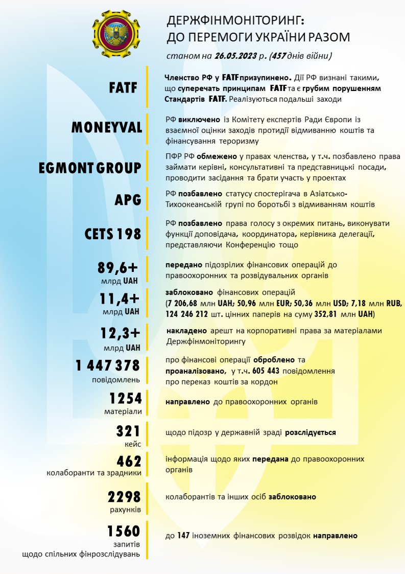 Державна служба фінансового моніторингу України опублікувала черговий звіт про результати боротьби проти Росії на фінансовому фронті, що певним чином може послаблювати і фінансування армії агресора.