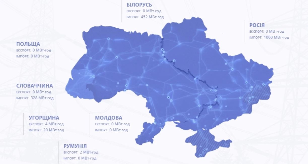 У п'ятницю, 12 лютого, Україна імпортувала 1060 МВт-год електроенергії з Росії. Про це пише ЕП з посиланням на дані на сайті "Укренерго".