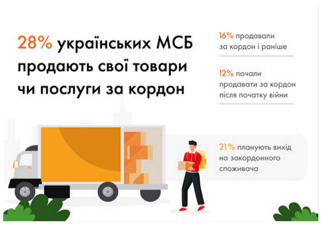 Проте 28% підприємців, котрі продовжують працювати під час війни, вже розширили свою діяльність на закордонного споживача.