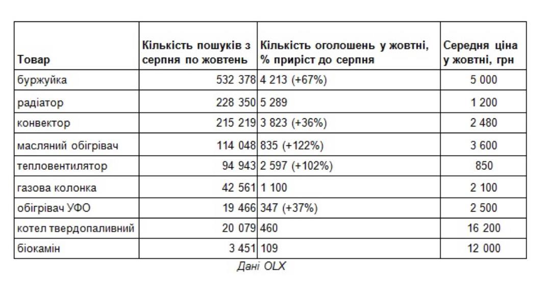 Проте зріс не лише попит, а й пропозиція разом із середніми цінами. Так, порівняно із серпнем біокаміни подорожчали на 2 тис. грн, масляні обігрівачі та котли – на 1,2 тис. грн.