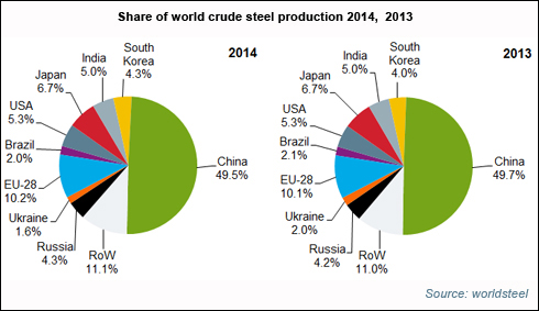 Цей показник дозволив Україні зберегти, як і роком раніше, 10 місце в рейтингу світових виробників сталі. В грудні 2014 в Україні було вироблено 1 млн 903 тис. т сталі - це на 28,5% менше показників аналогічного місяця минулого року.