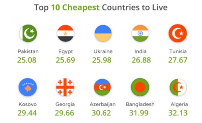 У трійці також виявилися Пакистан і Єгипет. П'ятірку країн, у яких порівняно низькі ціни, доповнили Індія і Туніс.