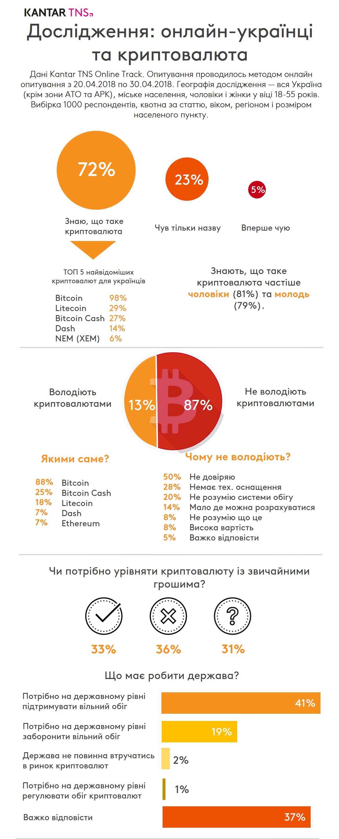 Дослідження проводилося з метою зрозуміти, що українські інтернет-користувачі знають про криптовалюти, володіють ними, а також яку роль відводять державі в обігу криптовалют.