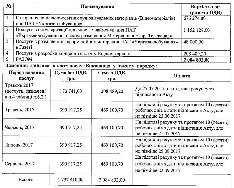 ПАТ "Укргазвидобування" 29 вересня оприлюднило угоду з ТОВ "Медіапартнерство" на послуги по розробці та розміщенню соціально-освітніх матеріалів в ЗМІ на 2,08 млн грн. Про це пишуть "Наші гроші" з посиланням на повідомлення в системі "Прозорро".