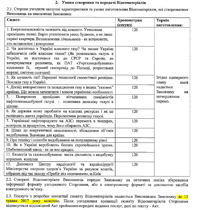 Угода була підписана 10 травня, а концепцію сюжету відеоматеріалів мали розробити до 15 травня.