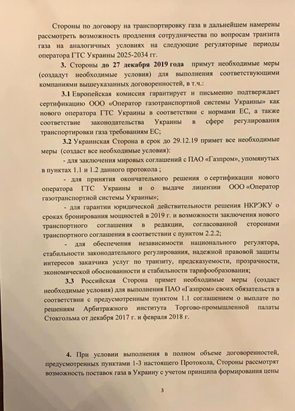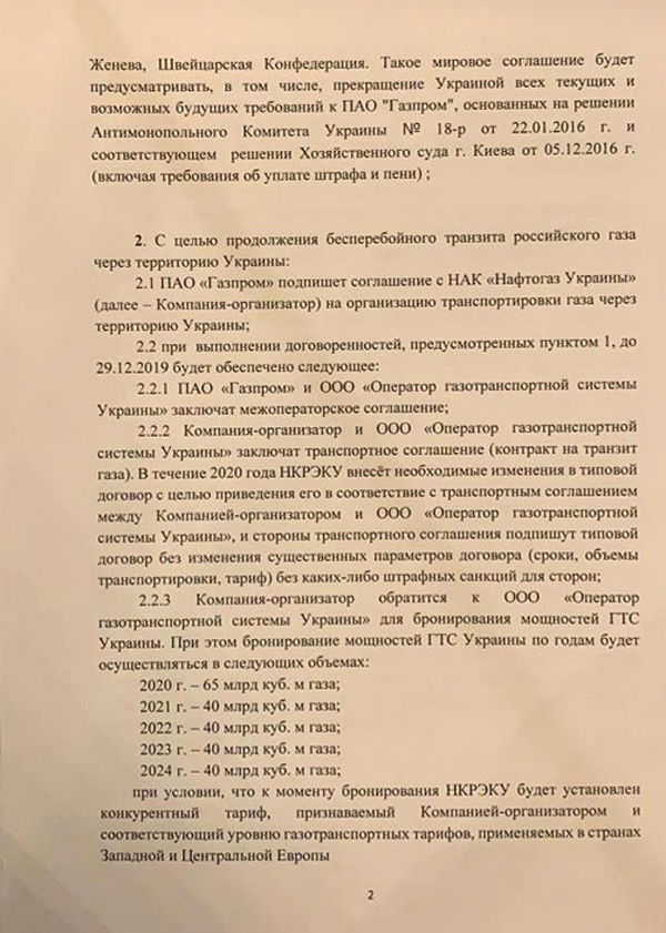 Як повідомлялося, сторони домовилися, зокрема, про виплату грошима $ 2,9 млрд за рішенням Стокгольмського арбітражу, транзит на 5 років з можливістю пролонгації ще на 10 років, відкликання нових зустрічних позовів з арбітражу, збільшення тарифу на транзит.
