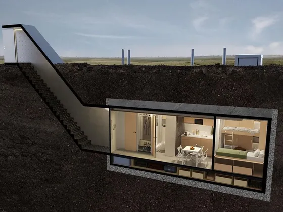 Бункер заглиблюється на три метри під землю та монтується в спеціальний котлован. Після чого відливається міцна захисна бетонна плита. Такий спосіб встановлення може гарантувати найвищий рівень безпеки, стверджують архітектори.