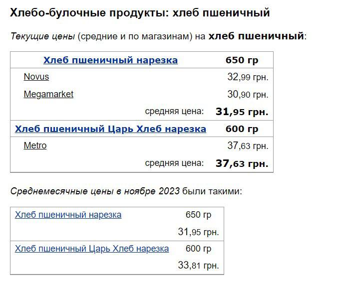 Трохи подорожчав у грудні та пшеничний хліб. Якщо батон 650 грам (нарізний) у ціні не змінився – 31,95 грн., то батон нарізний “Цар Хліб” вагою 600 грамів за місяць подорожчав – з 33,81 грн. до 37,63 грн.