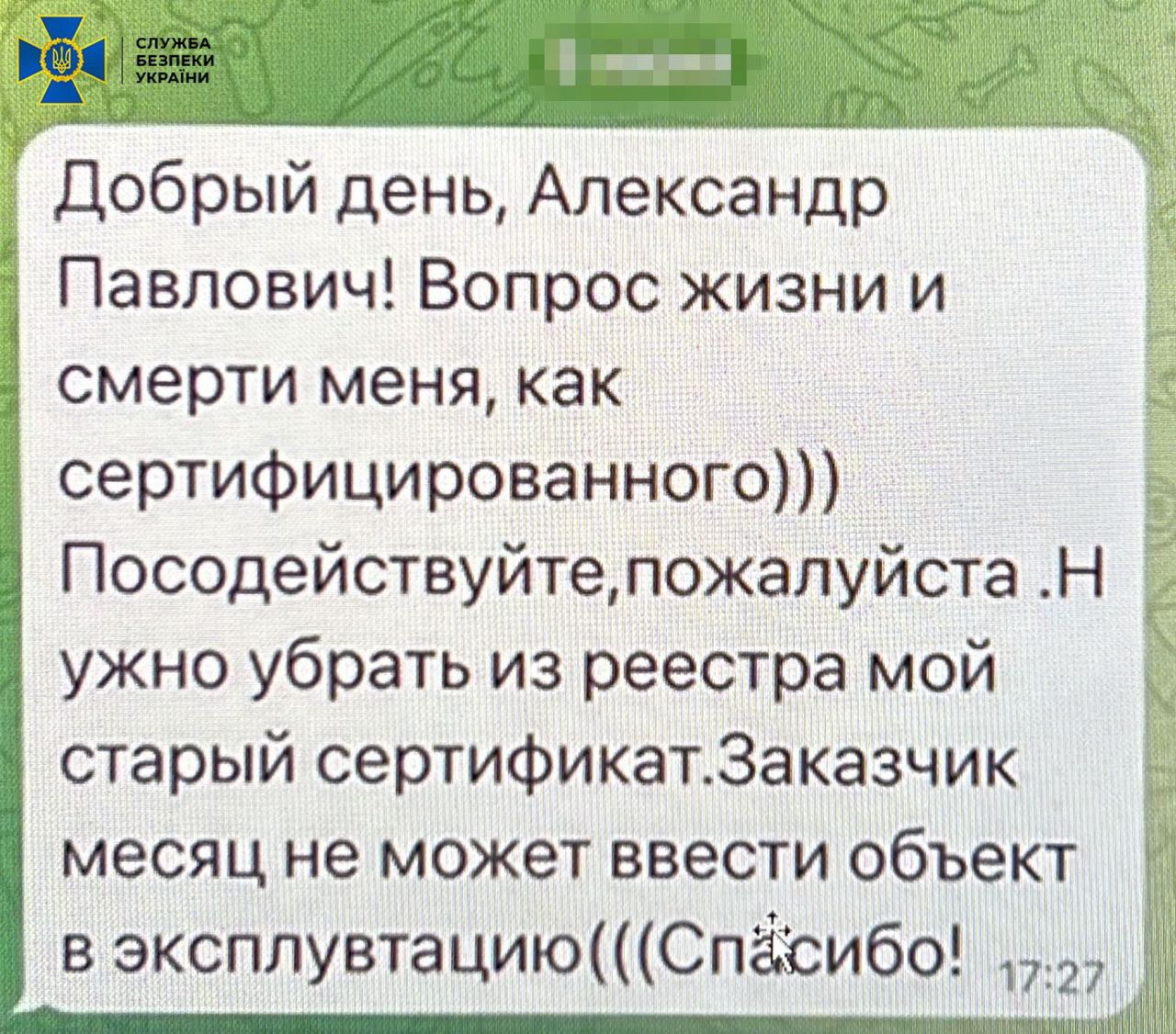 Як зазначається в повідомленні СБУ, за даними слідчих, зловмисники видавали підроблені сертифікати атестації архітекторів.