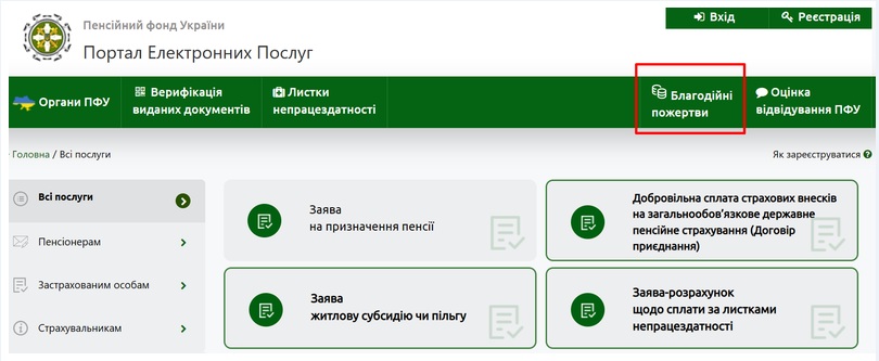 Для внесення коштів необхідно відвідати інтернет-портал електронних послуг Пенсійного фонду та виконати декілька простих маніпуляцій: