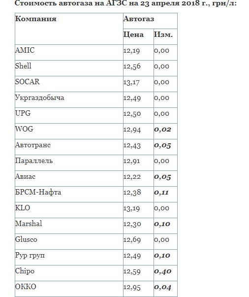 Повідомлялося, що в лютому-березні цього року вартість автогазу падала.