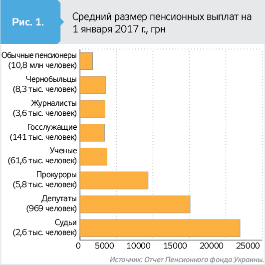 Автори вказують, що на сьогодні в Україні налічується 12 млн пенсіонерів. Переважна більшість серед них складають "звичайні" пенсіонери (10,8 млн громадян), які отримують середні виплати в 1730 грн у відповідності з законом України "Про обов'язкове державне пенсійне страхування". Виплата пенсій решті пенсіонерам призначалася за спеціальними законами, які гарантують "спеціальні" виплати в районі 3-4 тис грн.