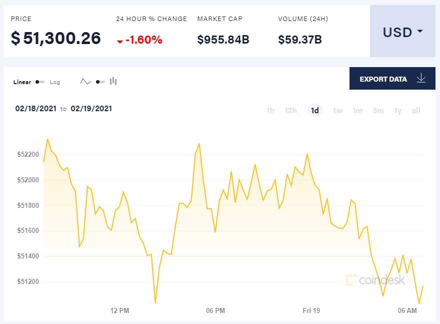Ціна криптовалюти Bitcoin продовжує зростати. Станом на 7:00 19 лютого її вартість перевищила 51 тисячу доларів і становить 51 300 доларів. Про це свідчить криптовалютна біржа Coindesk.