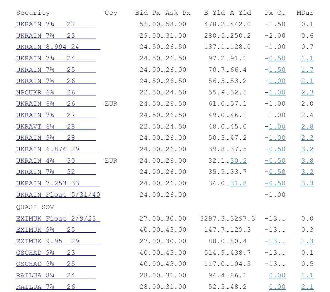 Ціни на українські євробонди опустилися практично до рівня кризового кінця лютого 2022. Тоді на знецінення державних цінних паперів вплинув напад РФ на Україну та песимізм інвесторів щодо майбутнього нашої держави. Нинішній спад, ймовірно, викликаний усвідомленням інвесторів, що війна буде тривалою і виснажливою. Очікування міжнародних інвесторів вкрай песимістичні. Вони не вірять у життєздатність, не так України, як її фінансової системи, у здатність уряду наповнювати бюджет та своєчасно розраховуватися із боргами.
