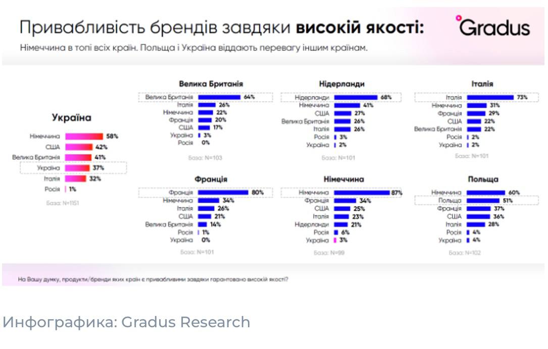 «Ці дослідження демонструють, що європейці схильні вибирати локальні бренди своїх країн, це норма в Європі…, — коментує Євген Близнюк, соціолог, засновник і директор Gradus Research. — Основний драйвер вибору – сприйняття країни як якісного виробника. Це бренд країни, що складається з великої кількості брендів та конкретних продуктів, і працює загалом на країну як бажану для покупки».