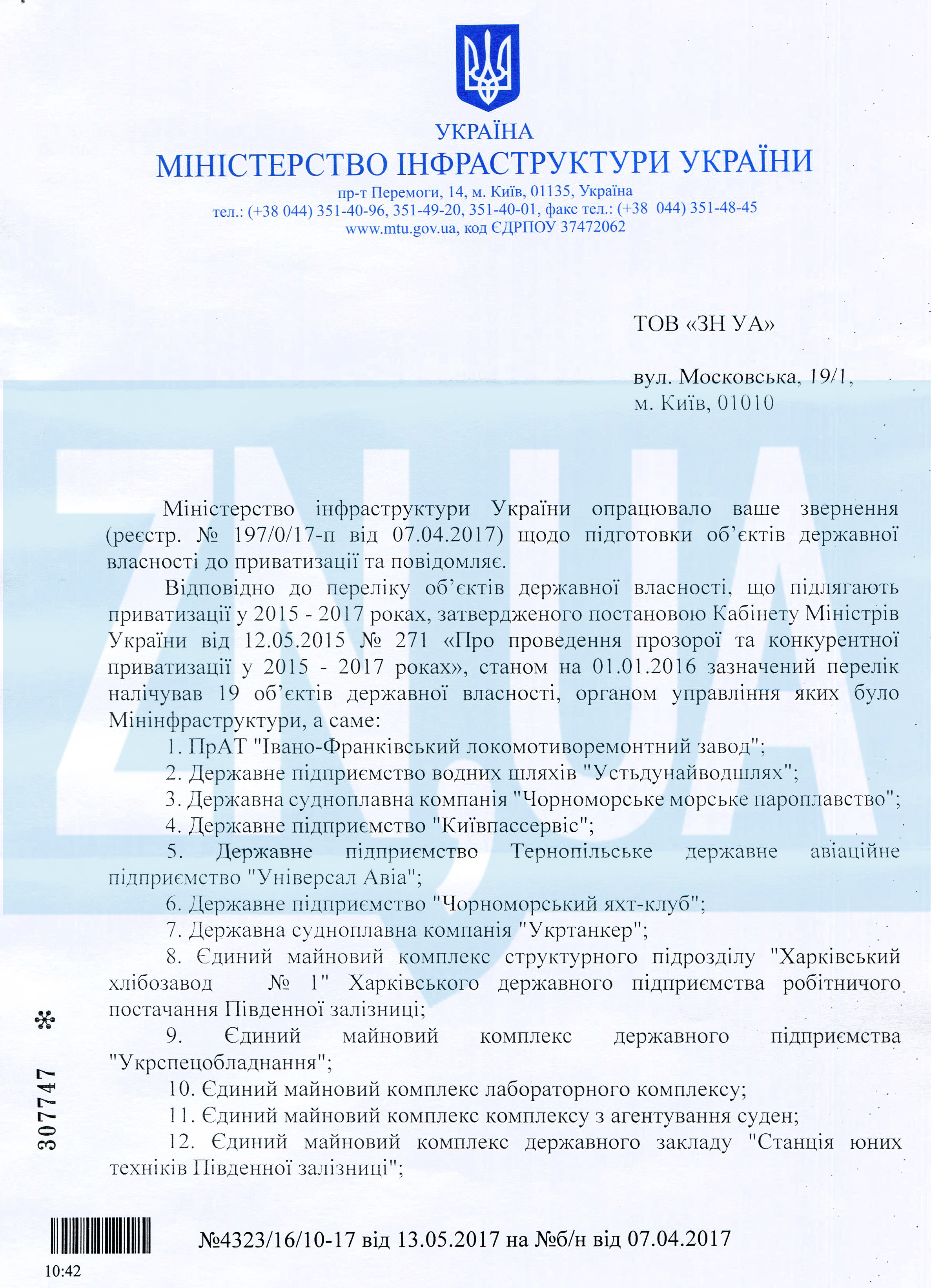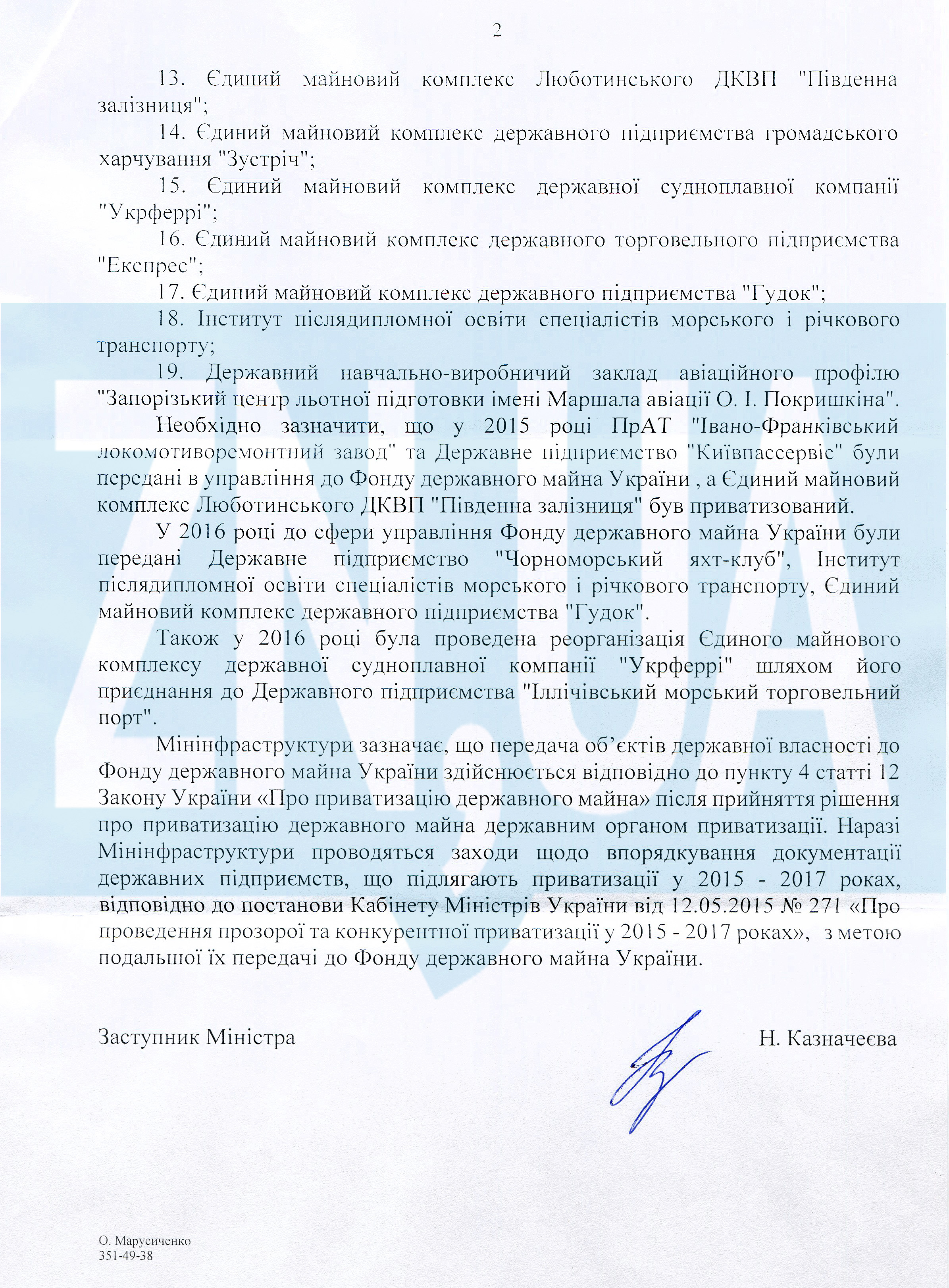 З 19 підприємств, що знаходяться у підпорядкуванні Міністерства інфраструктури України і підлягають приватизації у 2015-2017 роках, до Фонду державного майна України у 2015-2016 були передані лише п'ять підприємств і ще одне підприємство було приватизовано. Про це свідчать данні міністерства, які є в розпорядженні DT.UA.