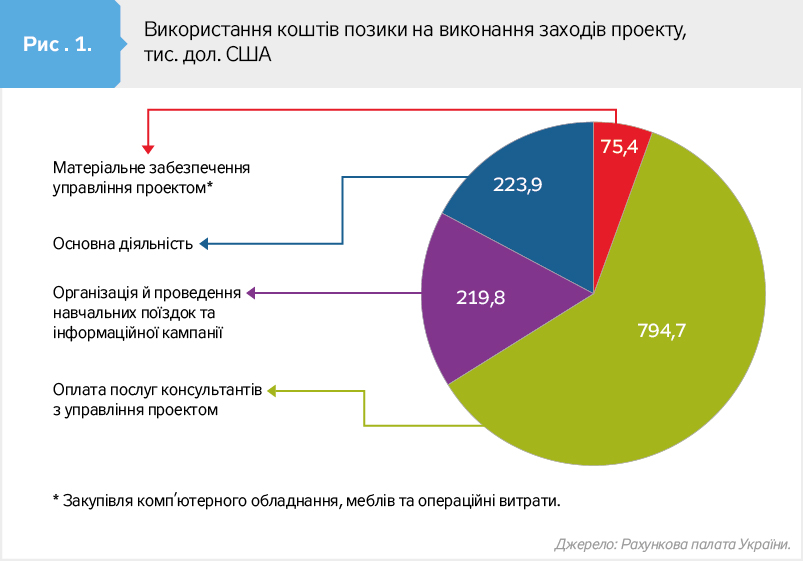 "19 березня 2015 р. між Україною та Міжнародним банком реконструкції і розвитку (МБРР) було укладено угоду про позику на 214,7 млн дол. США для реалізації проекту "Поліпшення охорони здоров'я на службі у людей". Аудит виконання цього проекту нещодавно завершила Рахункова палата - за неповні два роки з 214 млн чиновники змогли освоїти тільки 2,2 млн дол., тобто лише близько однієї сотої частини", - йдеться в статті.