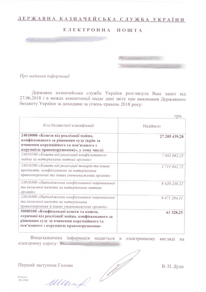 Протягом червня-серпня 2018 року за рішенням суду у корупціонерів конфіскували 4,432 тис грн. Про це повідомляє проект "Марлін" з посиланням на листи Державної казначейської служби.