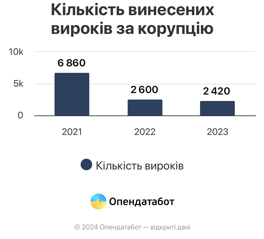 Через воєнний стан інформацію про корупціонерів приховали з відкритих джерел, тож наразі "Опендатабот" не може оприлюднити конкретні дані, як-от місце роботи та посаду правопорушника.