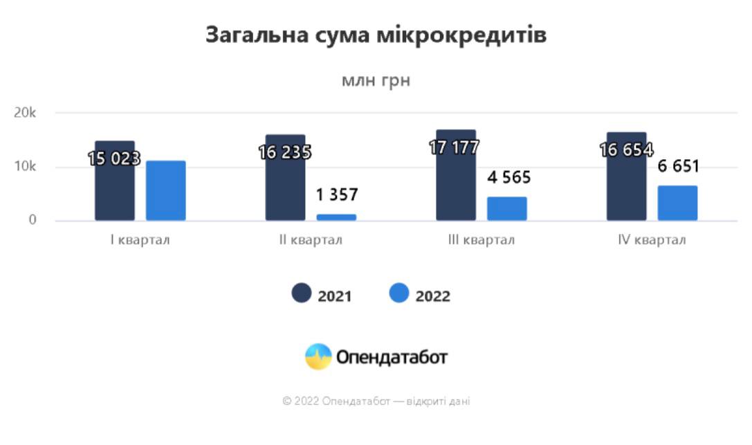 І хоча загальна сума нових виданих мікрокредитів скоротилася, середня сума кредиту за 2022 рік майже не змінилась та становила 4439 грн (на 3% менше, аніж у 2021 році).