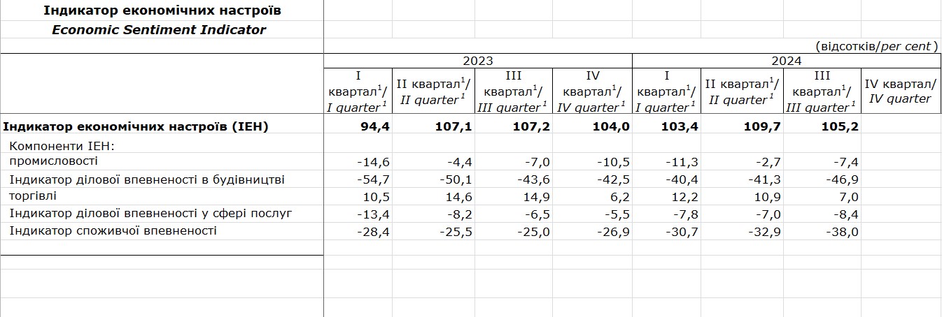Загальний показник індикатора економічних настроїв складає 105,2%.