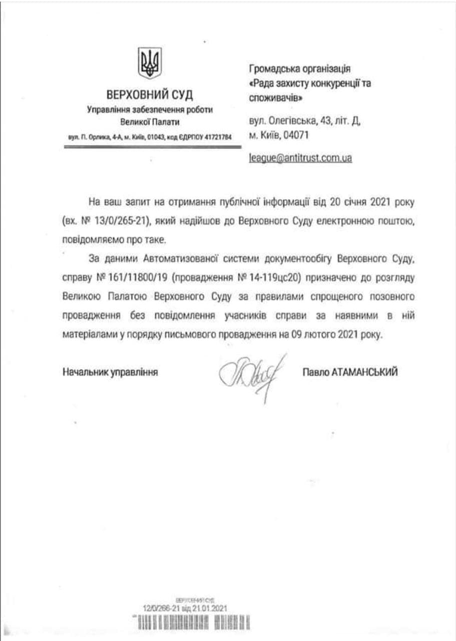 «Завтра Велика палата Верховного суду розгляне касацію громадянина Маник Г.М. по рішенню Луцького держсуду, який дозволив «Волиноблгазу» нараховувати та стягувати гроші за температурні фактори», - зазначила Загребельська.