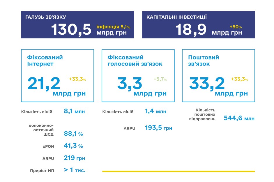 В цілому інвестиції в напрямок електронних комунікацій за підрахунками експертів регулятора склали 19 мільярдів, що на рекордну суму в +50% більше, ніж у 2022 році.