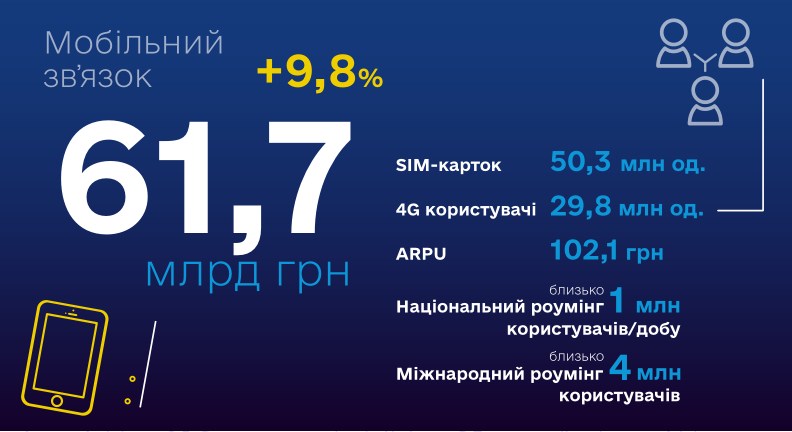 Активних карток мобільного зв'язку за даними статистики є наразі в Україні 50,3 млн. Це складає додатково ще один мільйон, порівняно з показниками 2022 року. водночас динаміка негативна – у 2021 році було на 5,6 млн карток більше. Частково це може пояснюватись намаганням користувачів скоротити видатки і деактивувати картки операторів, що не застосовуються у спілкуванні чи для бізнес-завдань.