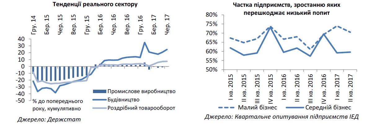 "Показники промисловості почали поліпшуватись у травні та червні. Збільшення купівельної спроможності населення стимулювало розвиток торгівлі", - йдеться у мониторингу.