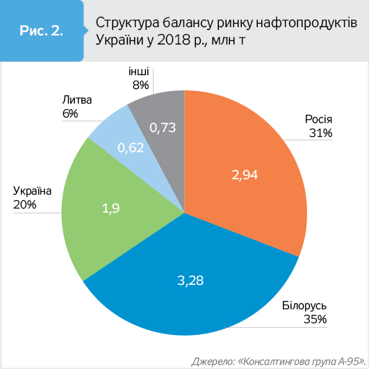 Зростання споживання дизельного палива і скрапленого газу в останні роки досягається за рахунок нарощування поставок з Росії. За попередніми розрахунками,у 2018 р. буде поставлено близько 2,7 млн т російського ДП, що, по-перше, є абсолютним історичним рекордом (2013-го було трохи менше 2 млн), по-друге, на нього припадатиме найбільша частка в балансі країни - 41%. З урахуванням Білорусі сумарна частка поставок моторних палив із країн Митного союзу становить понад 66% потреби.