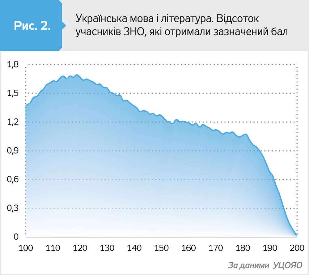 - У мене є графіки результатів ЗНО з математики та української мови . Ці тести були масовішими за інші, оскільки поєднувалися зі шкільними випускними іспитами. От візьмемо математику. Як я розумію, в ідеалі графіки мають нагадувати капелюх із полями - трохи учнів з низькими результатами, трохи - з високими, і найбільше - "середнячків". У нас же виходять якісь "горбаті динозаври". Це свідчить про те, що є проблеми з вивченням математики в школі?