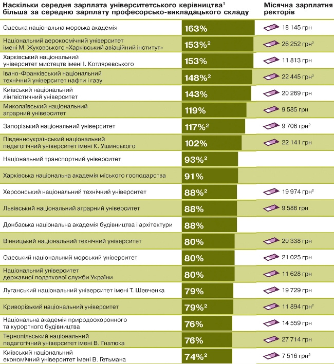 У цій ситуації промовистими є зарплати ректорів деяких національних вишів, що сягають 20 тис. грн і більше (див.рис.).
