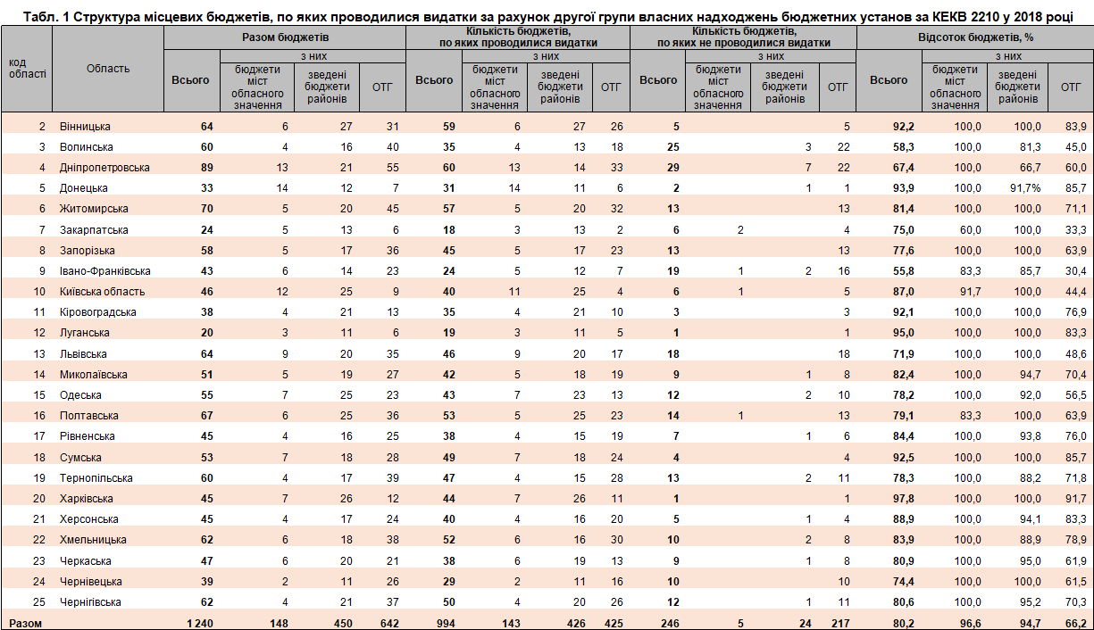 Як згадувалося в попередній статті, кількість бюджетів, з яких фінансувалася загальна середня освіта 2018 року, становила 1249, 2019-го - 1361. Але деякі бюджети з аналізу було вилучено. Це бюджет міста Києва, обласні бюджети та бюджети, в яких у структурі видатків відсутня заробітна плата. Залишилося для аналізу 1240 бюджетів за 2018 рік і 1350 бюджетів за 2019 рік.