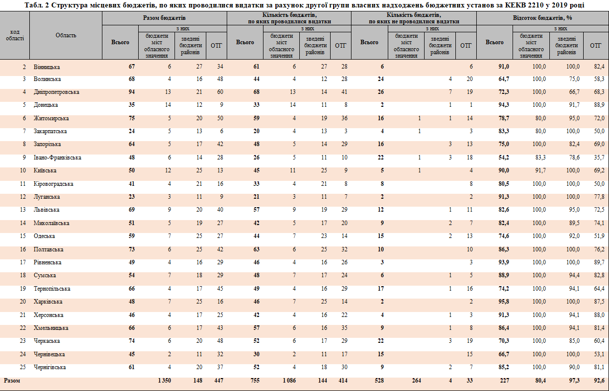 У таблиці 3 показано, що, крім бюджетів, у яких видатки відсутні взагалі, у великій кількості бюджетів видатки обліковуються в досить малих сумах.
