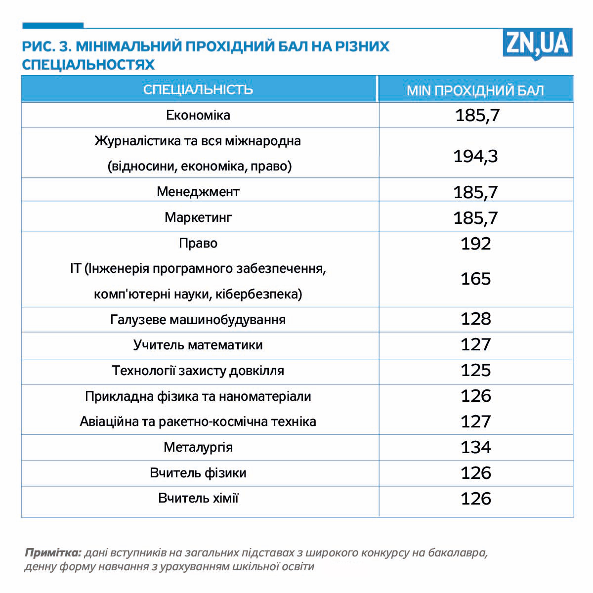 До речі, цього року середній конкурсний бал вступників вищий, ніж попереднього. Зараз він коливається від 150 до 172, а минулого — від 146 до 162. Це і зрозуміло, адже НМТ усе ж таки було дещо легшим, ніж ЗНО попередніх років.