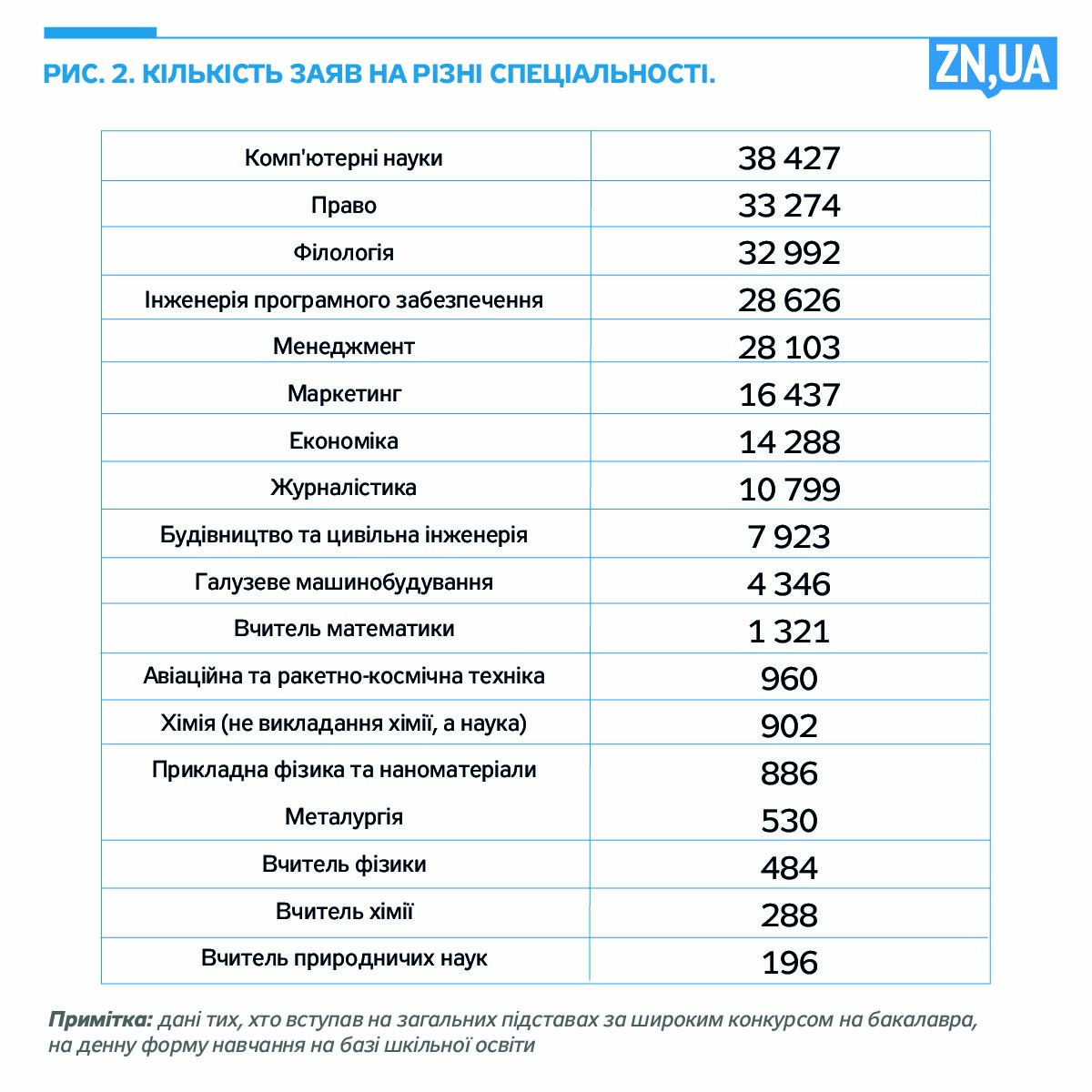 Звісно, навести тут дані всіх спеціальностей неможливо, візьмемо найпопулярніші.