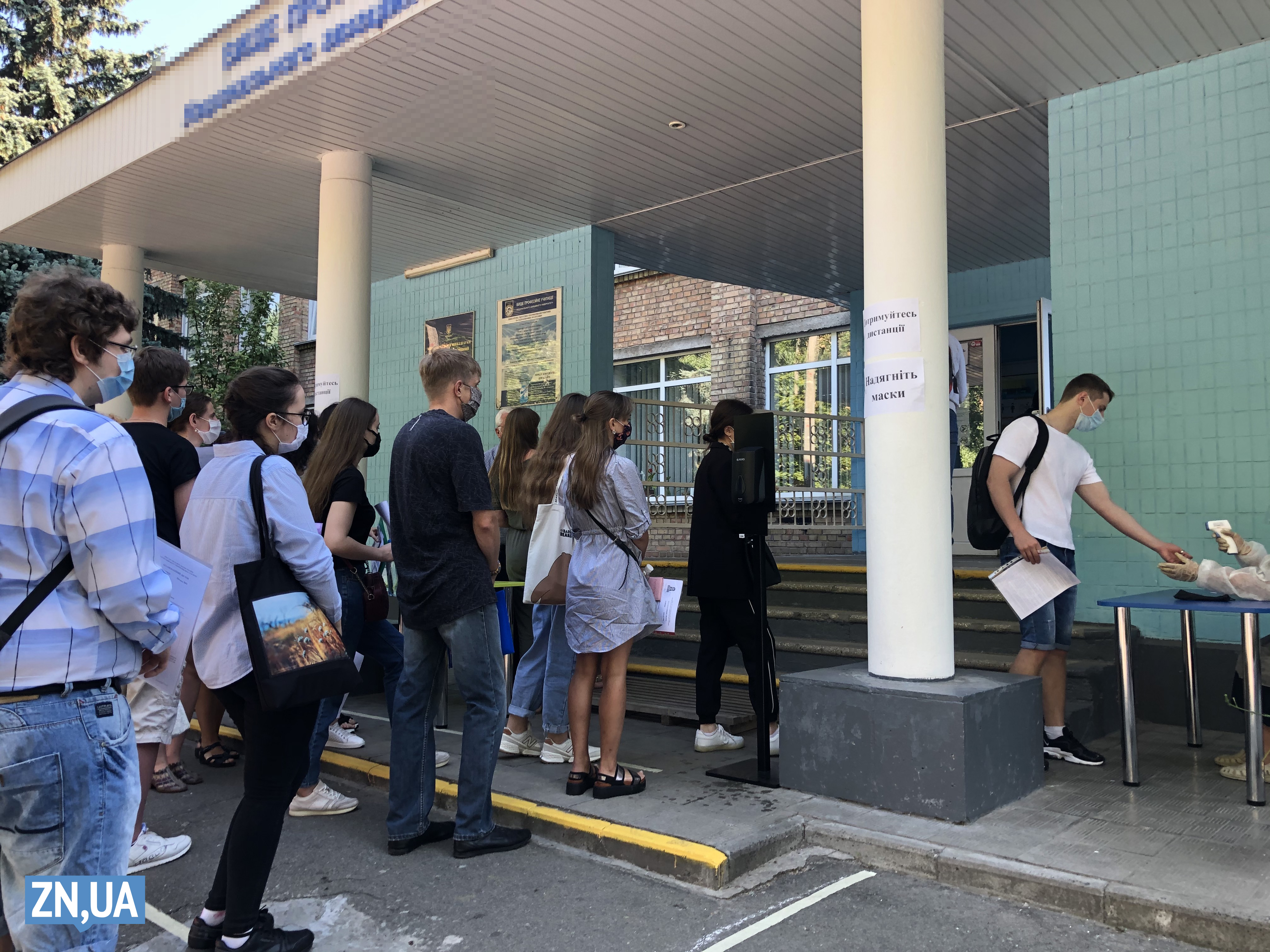Як і обіцяли в МОЗ, перед початком тестування в учасників виміряли температуру. Наскільки це було ефективно — звісно, питання, однак у пункті тестування, де був кореспондент DT.UA, приблизно кожного третього учасника запитували, чи не почувається він зле. І, звісно ж, отримували негативну відповідь. Адже коли в когось і є ознаки поганого самопочуття, мало хто погодиться сказати про них чесно, бо це означатиме добровільну відмову від складання іспиту.