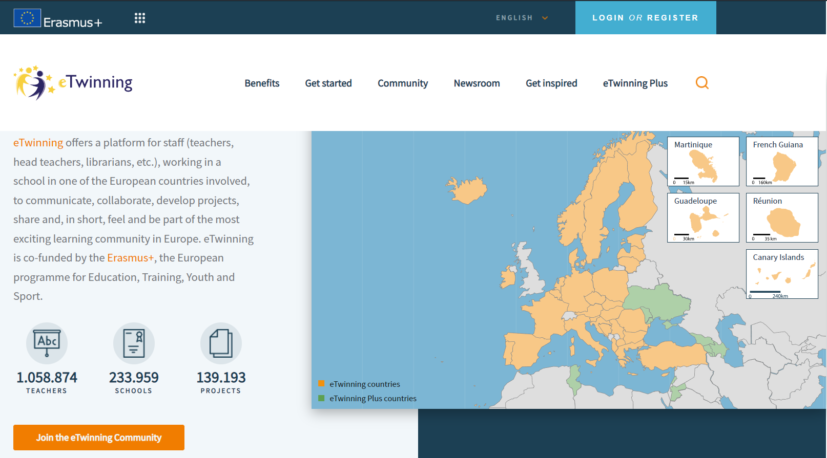 Для приєднання до програми eTwinning потрібно зареєструватися за посиланням.
