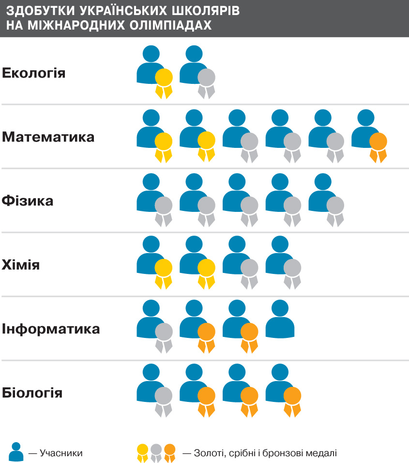 Цей рік, як і попередні, приніс українським школярам багато медалей на міжнародних інтелектуальних змаганнях. Так, українська освіта у кризі. Це правда. Але правда також і те, що таланти в нас є. І класні вчителі є, які бачать і підтримують ці таланти. І небайдужі батьки. І чуйні спонсори. Їхніми спільними зусиллями цього року команди наших старшокласників змогли гідно представляти країну на міжнародних олімпіадах.