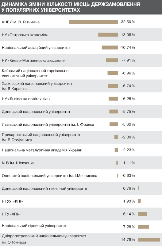 Порівняння цьогорічних обсягів держзамовлення в популярних університетах країни з минулорічними видається досить промовистим: