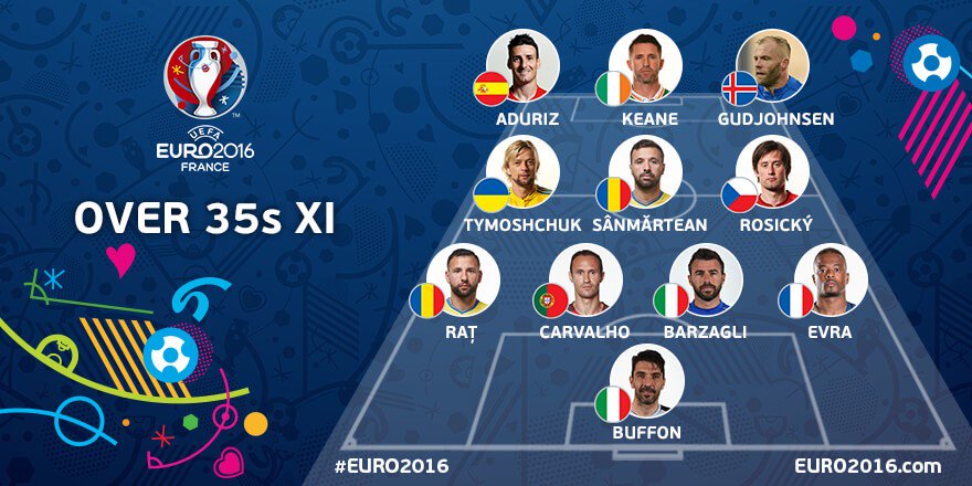УЄФА представив символічну збірну найбільш вікових гравців Євро-2016. До неї увійшли футболісти, яким вже виповнилося 35 років.